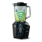 Capacidad efectiva 1.25L Potencia: 600W 2 velocidades + Turbo Picador de hielo Tecnología Problend Cuchillas de acero inoxidable de 4 estrellas desmontables Patas de goma antideslizantes Jarra de cristal Vaso portátil incluido Piezas aptas Lavavajilla Sensor de protección térmica